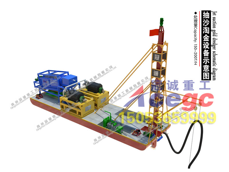 本套金矿重选设备为钻探式抽沙淘金船,是我公司根据用户需求,独立设计制作而成,本套设备处理量大、回收率高,设备故障率低,深受国内外用户的欢迎,基主要优势如下: