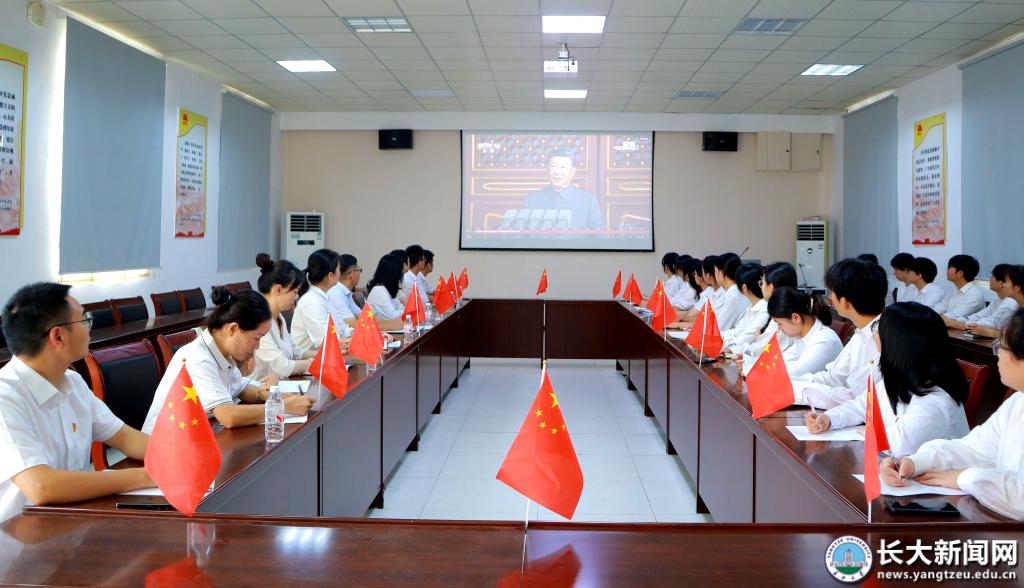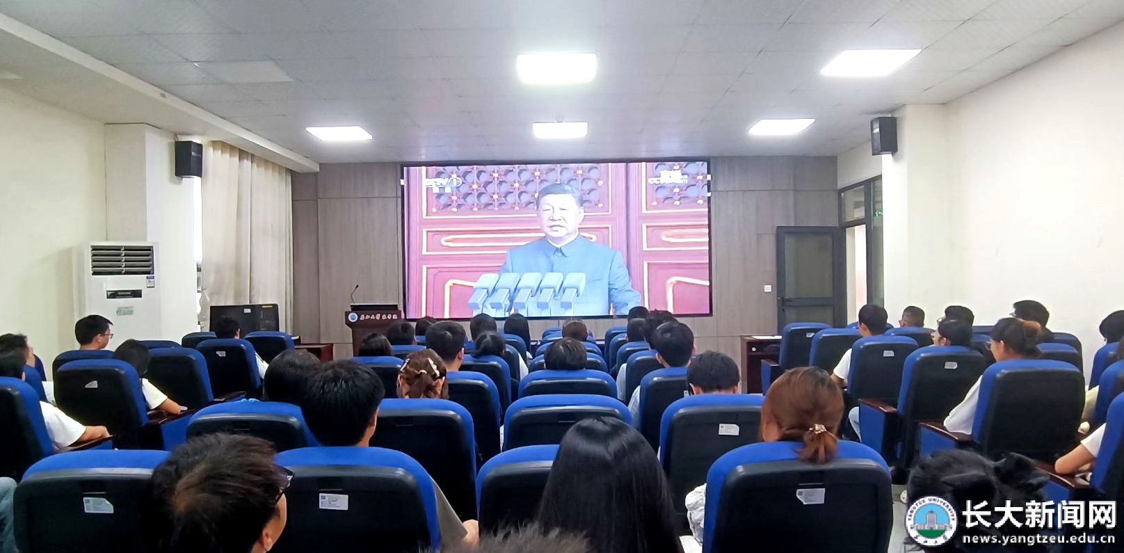 按照学校党委统一安排,在校校领导、职能部门负责人、教师代表等在6教205会议室集中收看。各二级单位以党支部、团支部、年级、班级、课题组等为单位,在报告厅、教工之家、多媒体教室等处集中收看。师生还自发通过各种形式收听收看。