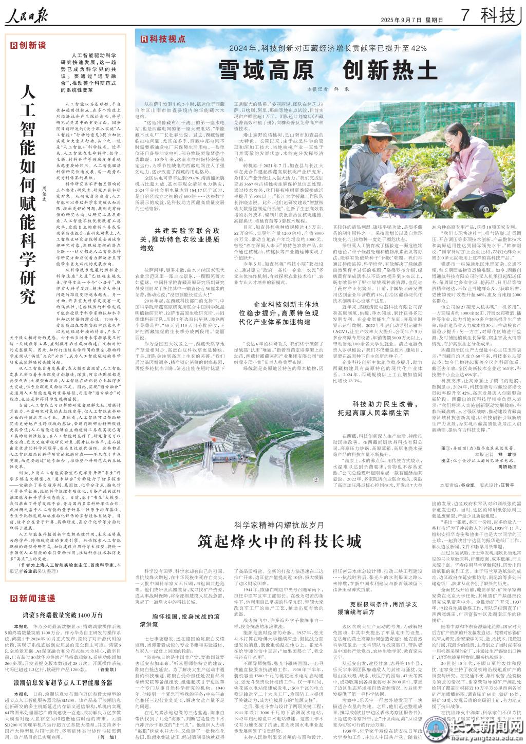 新闻网讯 9月7日,《人民日报》第七版《科技》刊发文章《2024年,科技创新对西藏经济增长贡献率已提升至42%——雪域高原 创新热土》,大篇幅聚焦湖北科技援藏,并报道了永利yl23411集团官网入口科技援藏工作。