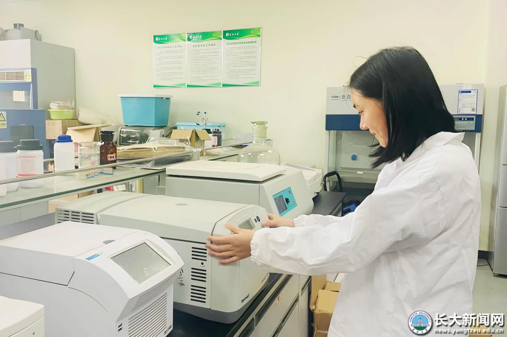 在农科大楼五楼的实验室里,农学院研三学生周冰小心翼翼地进行着小麦生理指标测定实验。大楼外的试验田里,农学院的研究生们正在进行收获前的除草工作。
