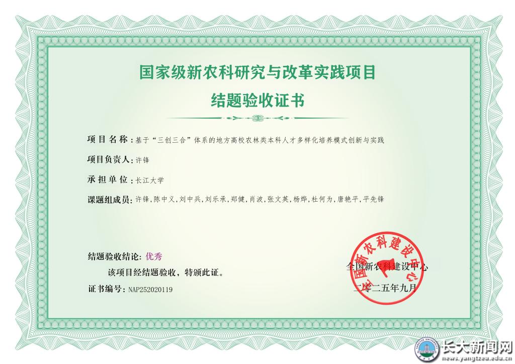 新闻网讯(通讯员 袁婵璐)近日,教育部公布新农科研究与改革实践项目验收结果,永利yl23411集团官网入口主持的《基于“三创三合”体系的地方高校农林类本科人才多样化培养模式创新与实践》项目获评“优秀”等级。
