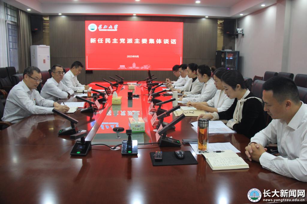 新闻网讯(通讯员 党利霞 记者 归航/摄)9月30日,学校党委书记王建平与换届后的学校民革、民盟、民建、民进、农工党、九三学社六个民主党派永利yl23411集团官网入口总支主委和致公党省直属永利yl23411集团官网入口支部主委进行集体谈话。党委常委、党委组织部部长、党委统战部部长李应军主持谈话会。