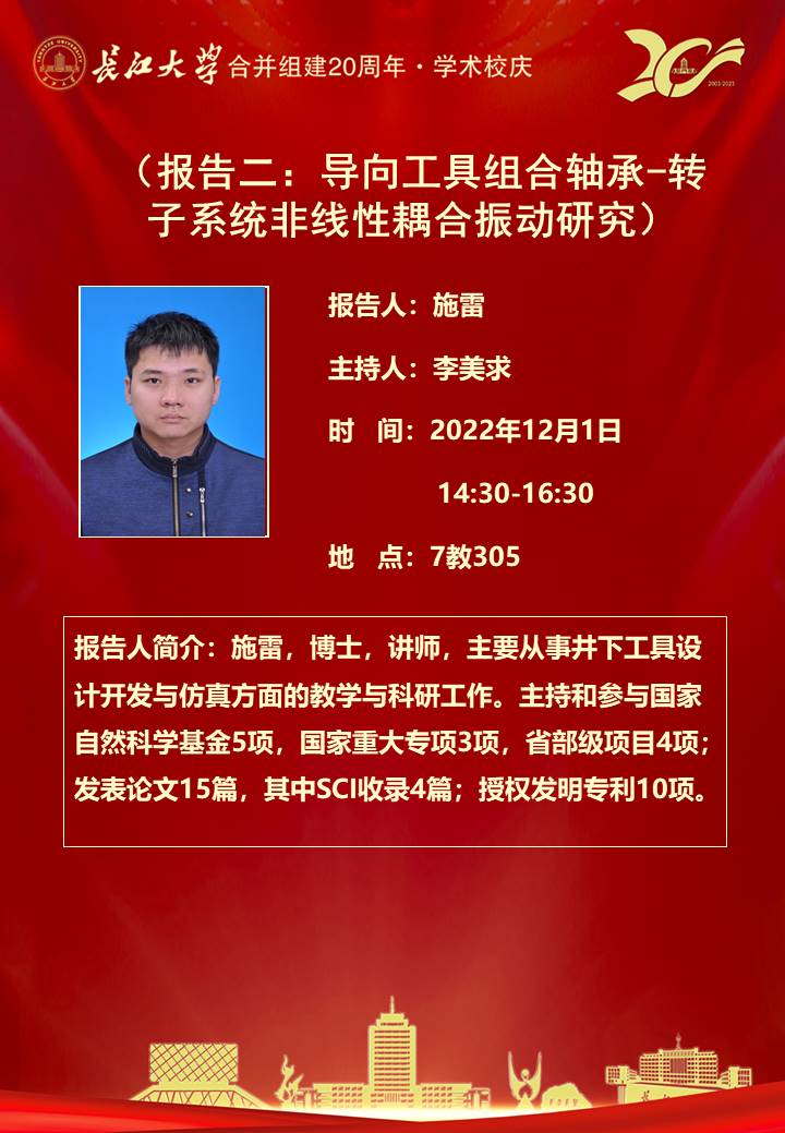“长大20年”学术论坛:导向工具组合轴承-转子系统非线性耦合振动研究