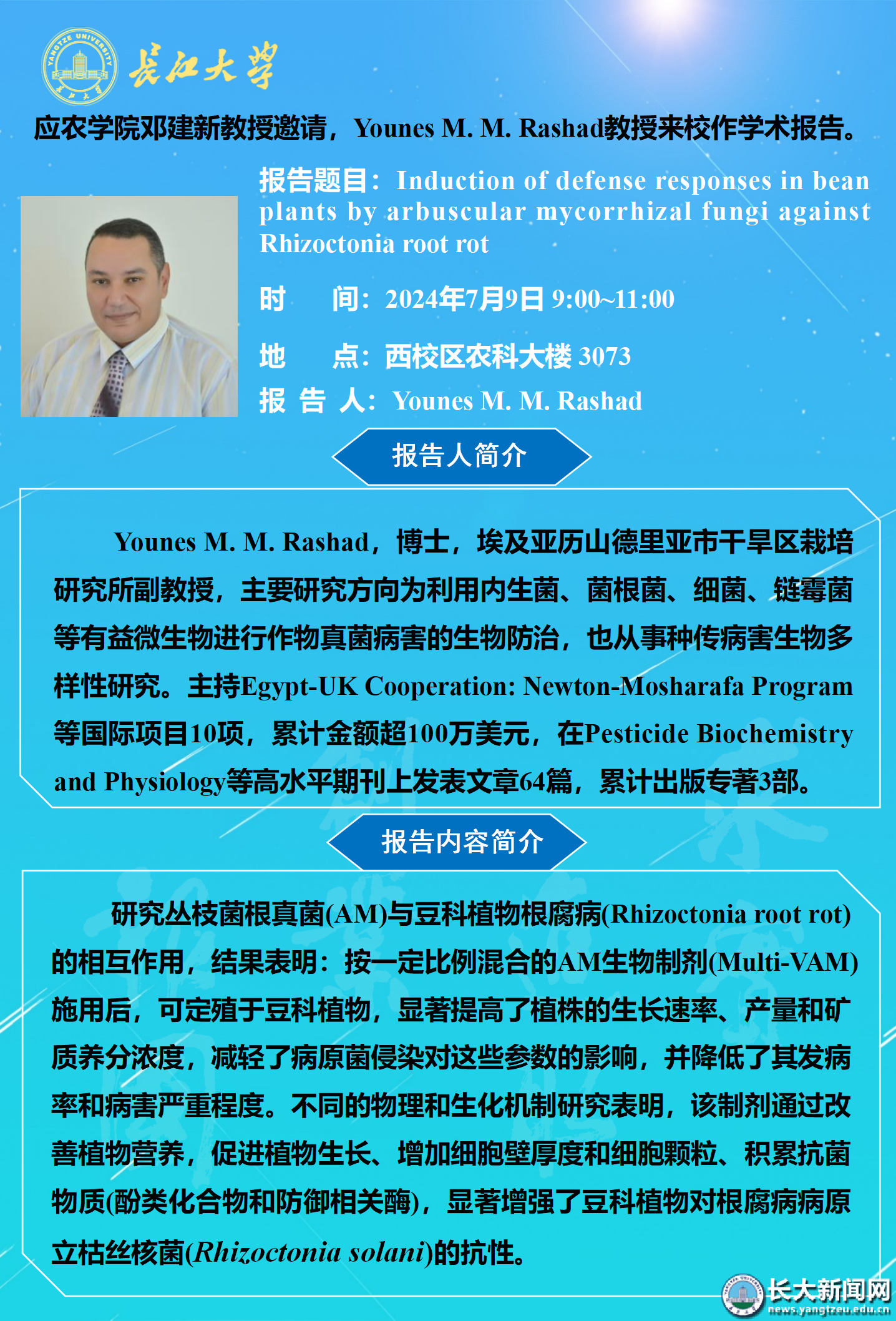 农学院2024年学术报告(十一):Induction of defense responses in bean plants by arbuscular mycorrhizal fungi against Rhizoctonia root rot
