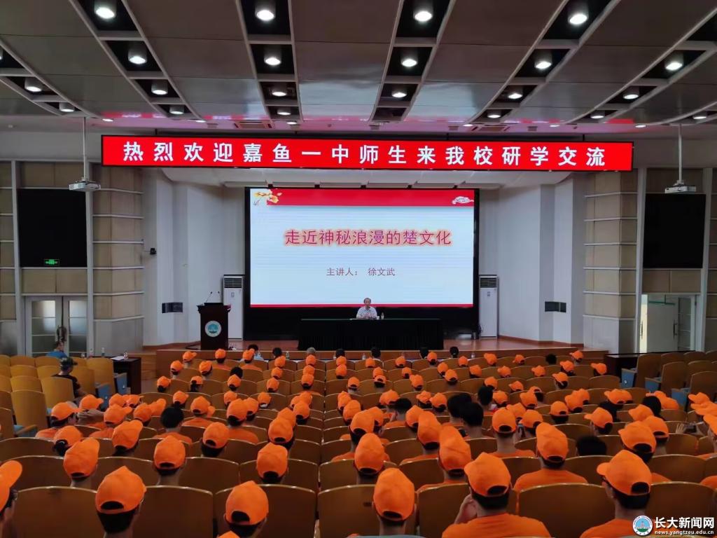 本次研学设置文化讲座、校园体验、文化考察等环节。在文化讲座环节,人文与新媒体学院教授、楚文化研究院执行院长徐文武以《走近神秘浪漫的楚文化》为题,为师生们讲授了一堂有深度、有趣味的文化大课。徐文武教授系统梳理了楚文化的发展历程,详细介绍了楚文化的六大支柱,精辟分析了楚文化的交流互鉴和当代价值,激发了现场师生对楚文化的浓厚兴趣。