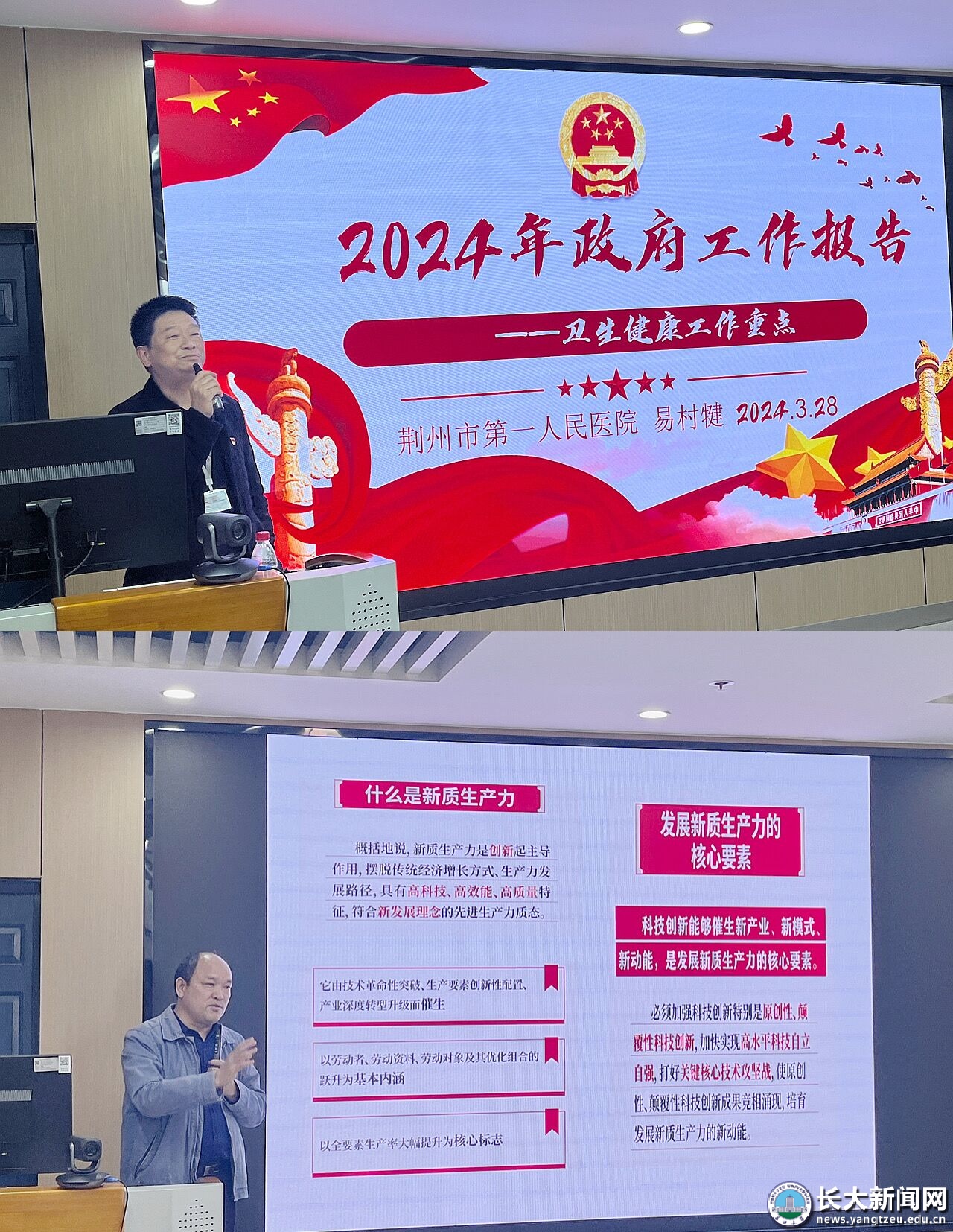 活动伊始,党员们庄严地重温了入党誓词,并进行了深入的理论学习。别具特色的微党课为活动增添了浓厚的学习趣味。市一医党委副书记易村犍以《2024年国务院政府工作报告中卫生健康工作重点》为题,为大家带来了一堂生动的政治理论课;马院院长姜学勤以《新质生产力》的主题,详细解读了发展新质生产力需要把握好的几组关系。